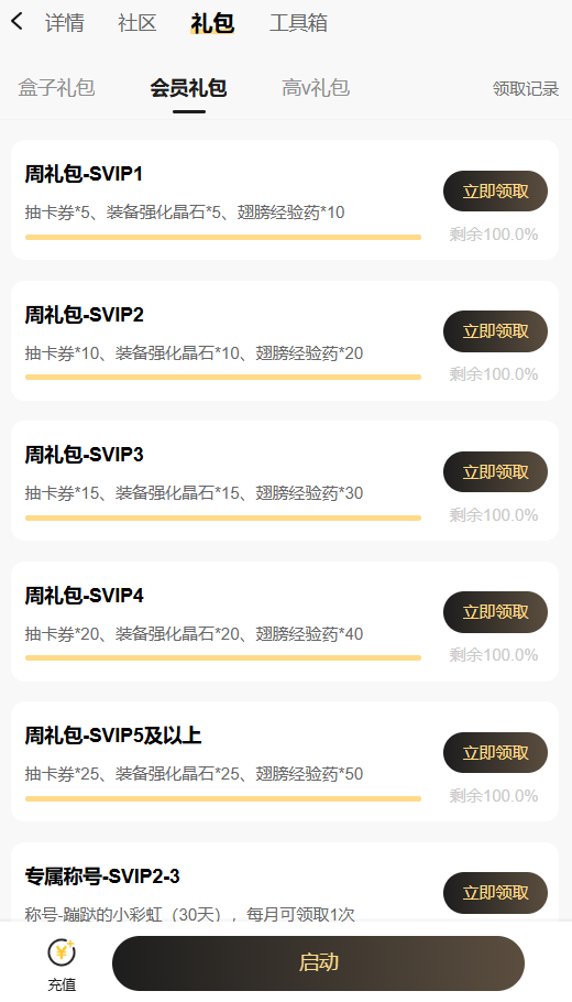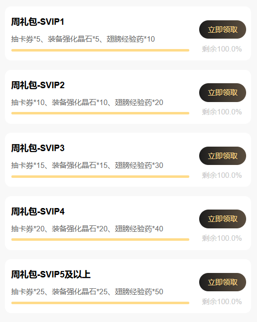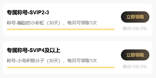 注意:SVIP1~SVIP4可领取对应等级的礼包;SVIP5及更高等级统一领取SVIP5礼包。