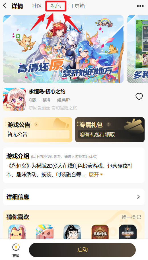 进入“39游戏盒子”-“永恒岛-初心之约”社区找到“礼包”-“会员礼包”领取专属权益;
